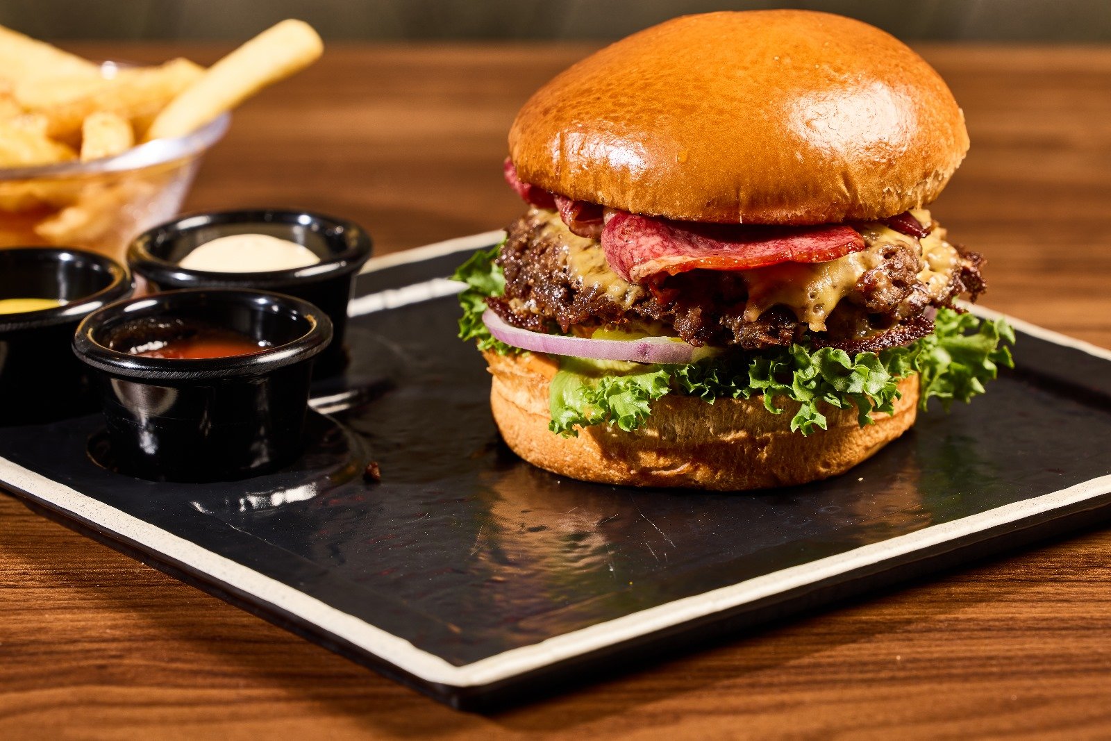 220 גרם, רוטב ניו יורק, בצל סגול, חסה, עגבנייה, מלפפון כבוש וגבינת צ'דר, תוספת קציצה 110 גרם, 18₪תוספות: רצועות קורנביף 12₪ | רצועות אסאדו 12₪ | אסאדו 15₪ | שווארמה בקר 15₪ | רצועות אווז 15₪