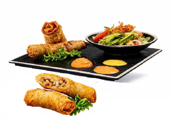 رولان من دجاج مقرمش متبل، يُقدّمان مع سلطة أصلية