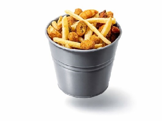 مكون من تشيبس ، بوتيتو، وبطاطا حلوة، وزيتون مقلي.